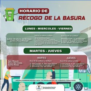 - 📌 Respetemos los horarios de recojo de residuos sólidos.