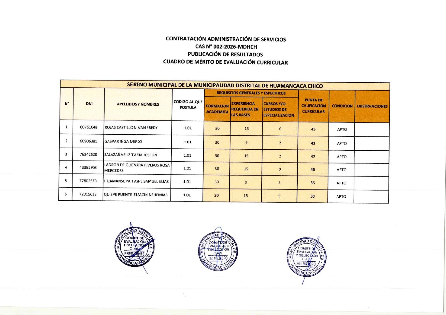 Evaluación Curricular CAS N° 002-2026